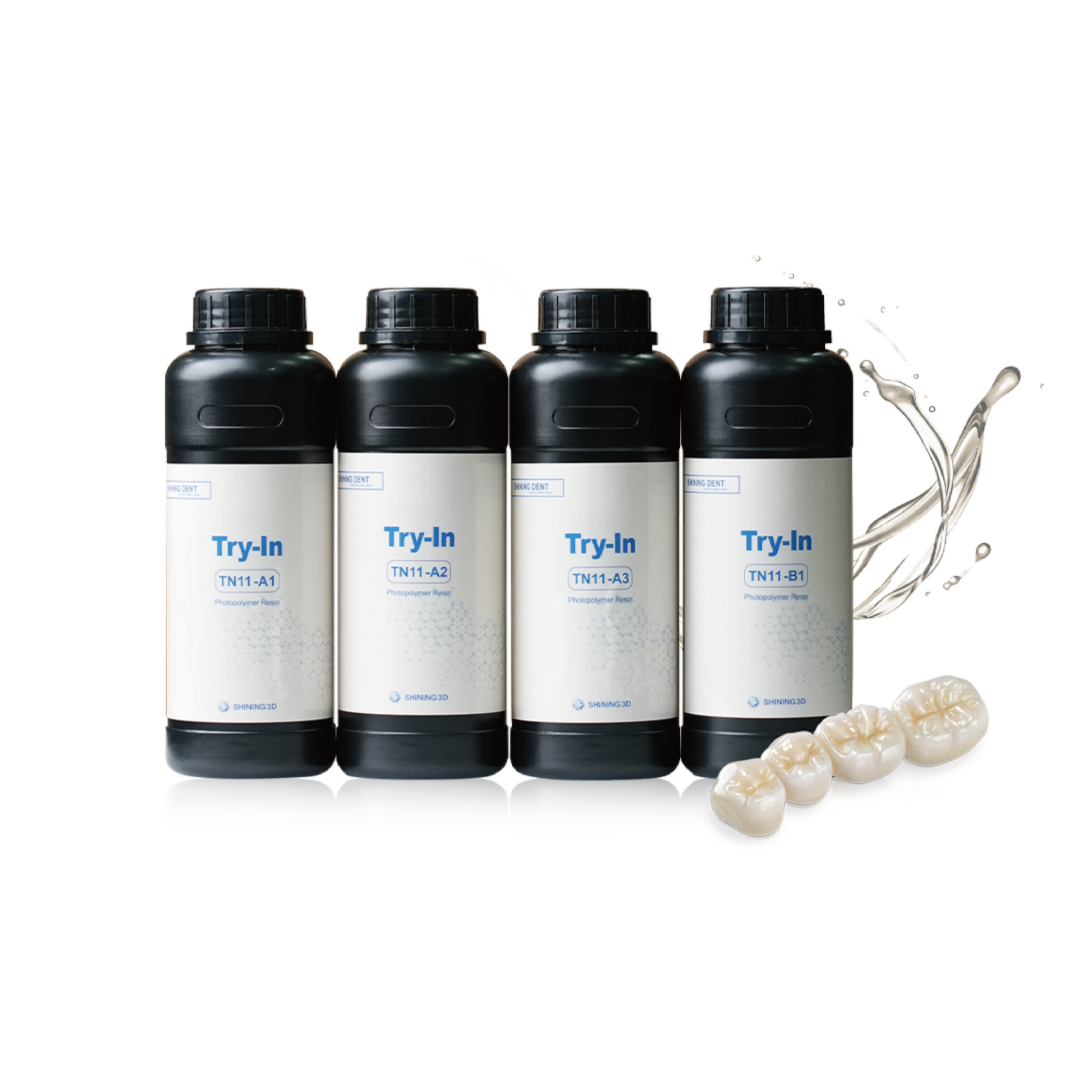 TN11 ist die ideale Wahl für den Druck provisorischer Kronen und Brücken zum Einsetzen und Anprobieren, mit perfekter Leistung in Bezug auf Farbe, Morphologie, Okklusion usw.